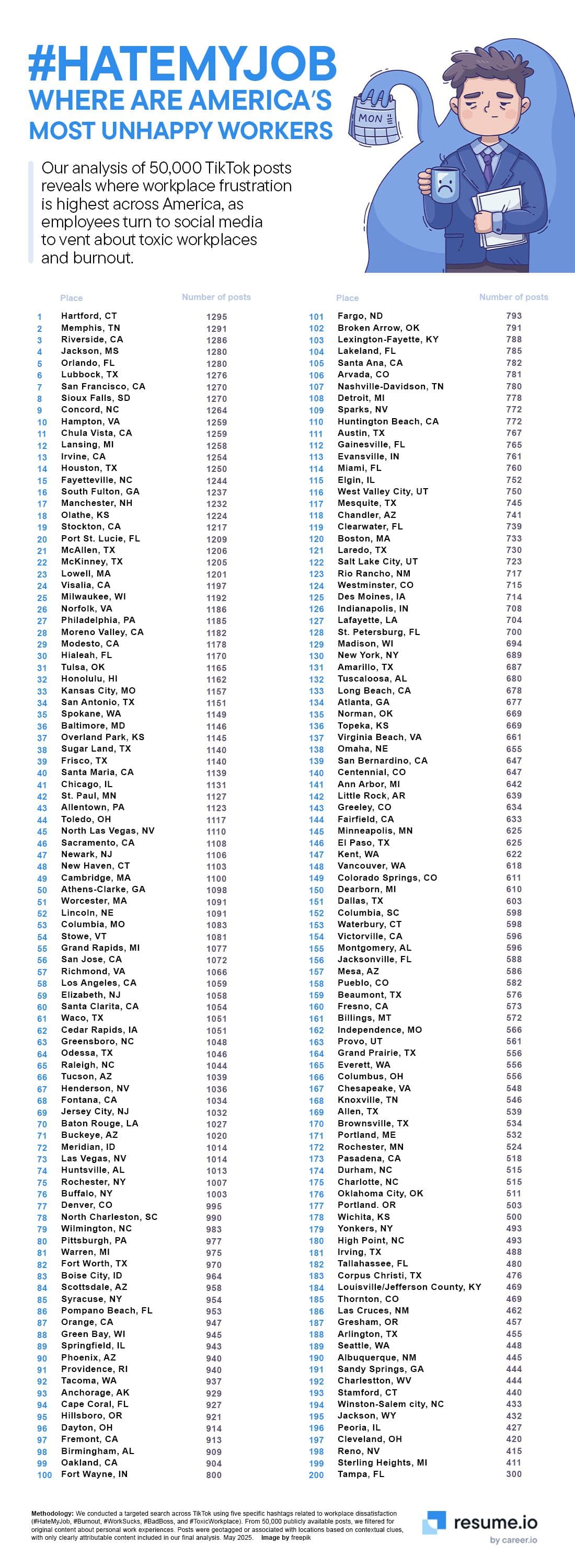 We took a deep dive into 50,000 TikTok posts to find out which US cities have the most disgruntled and frustrated employees. Read on for some further insights.