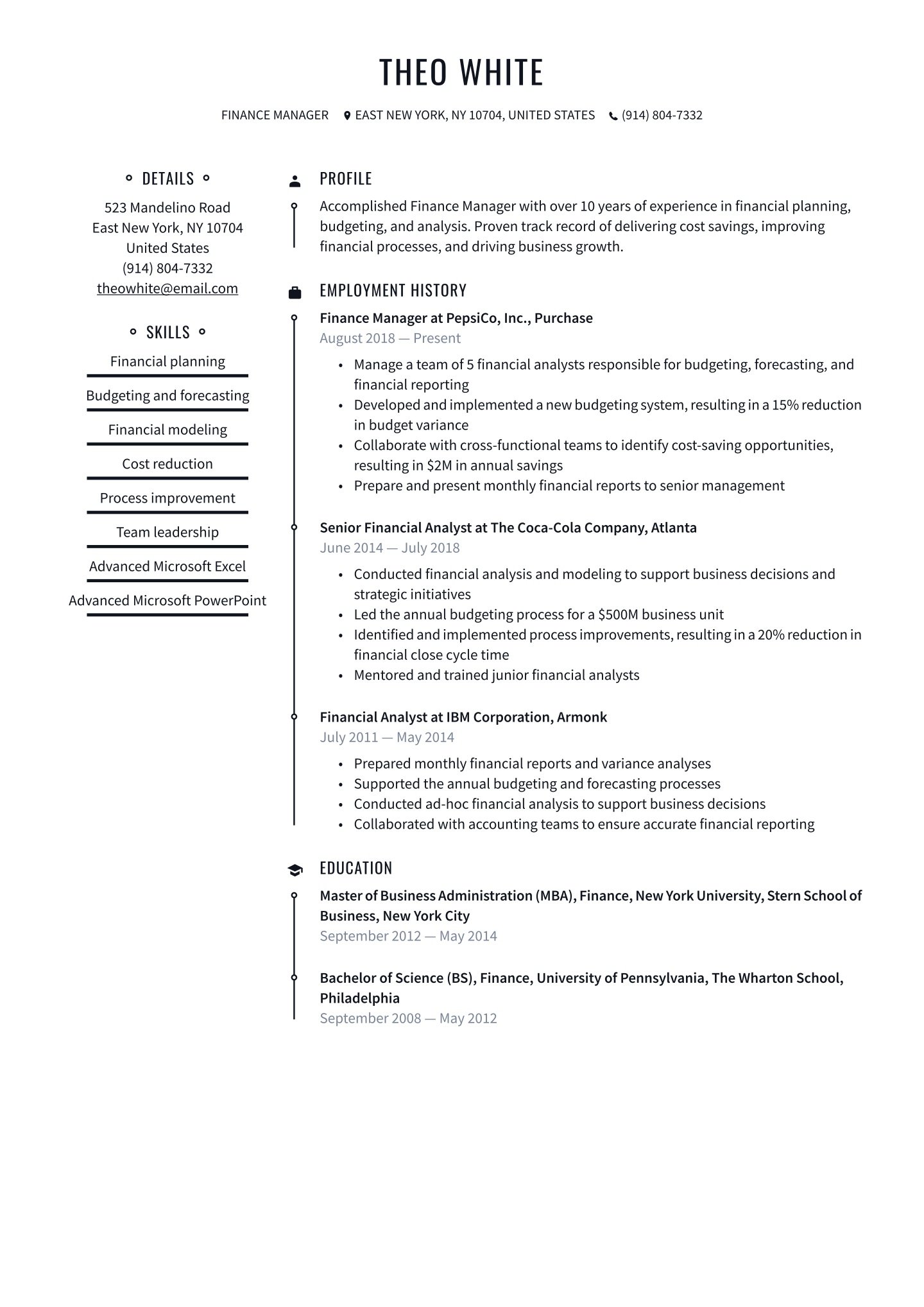 Your header is like the business card of your accounting and finance resume. Make your contact information accessible, professional, and legible.
