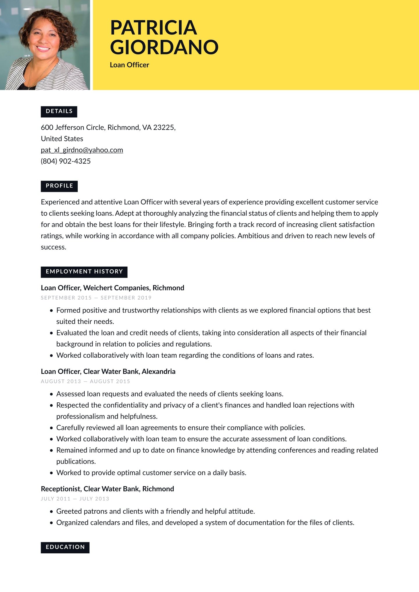 - The education section