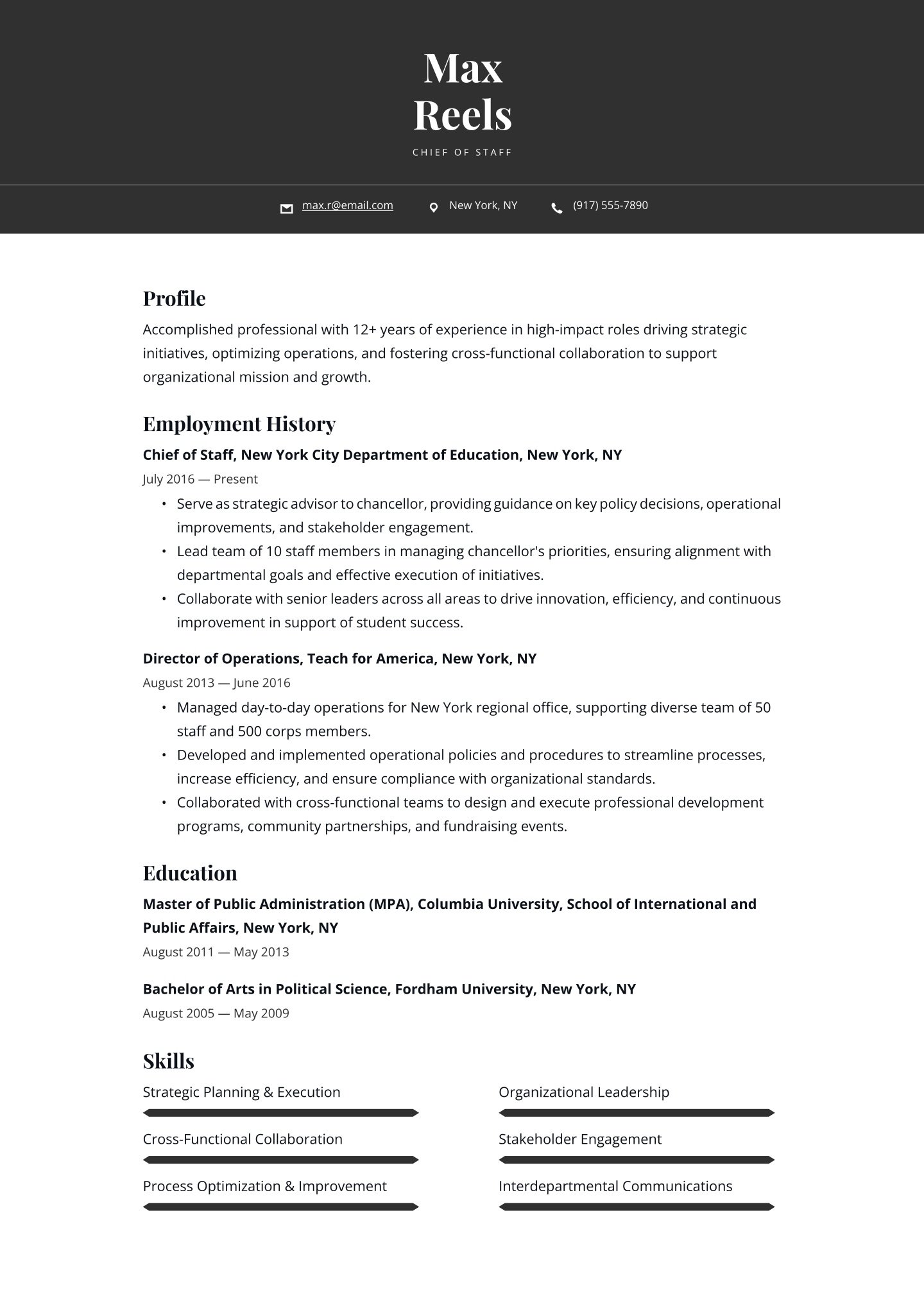- The resume header