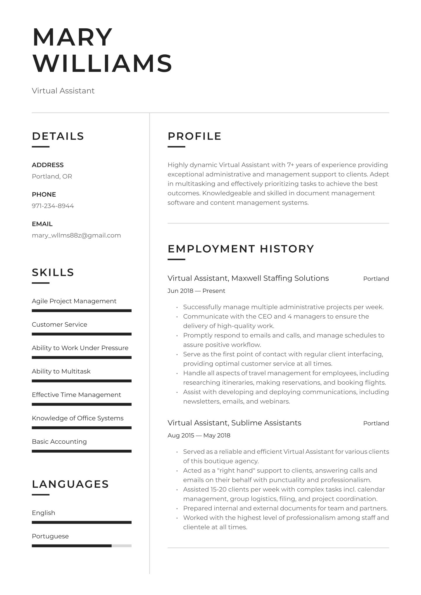 Below you will find an adaptable skills resume example.