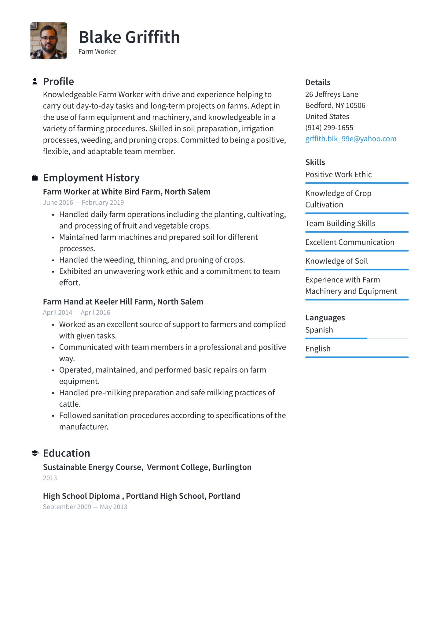 Agricultural engineers are required to hold a bachelor’s degree or higher, preferably in agricultural engineering or biological engineering. If you have been a working professional for several years, you can keep this section brief, listing your degrees and certificates only. If, however, you are new to the field or the workforce, consider listing any relevant classes, accolades, and your GPA, if it is outstanding. If you hold a master’s degree or higher, you may leave out your high school. See example content below.
