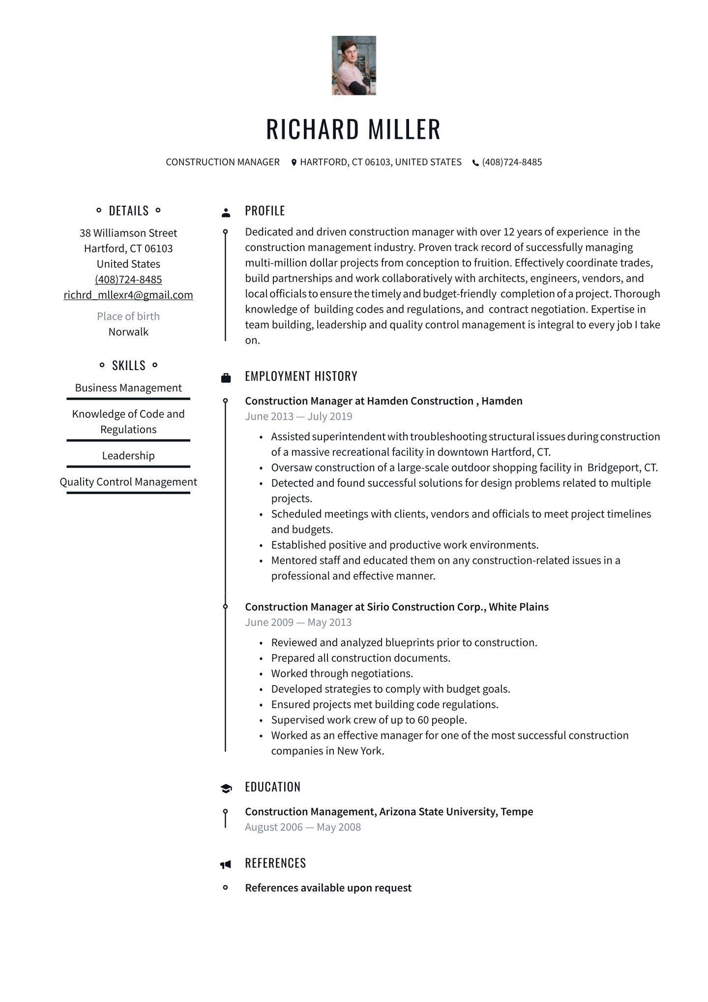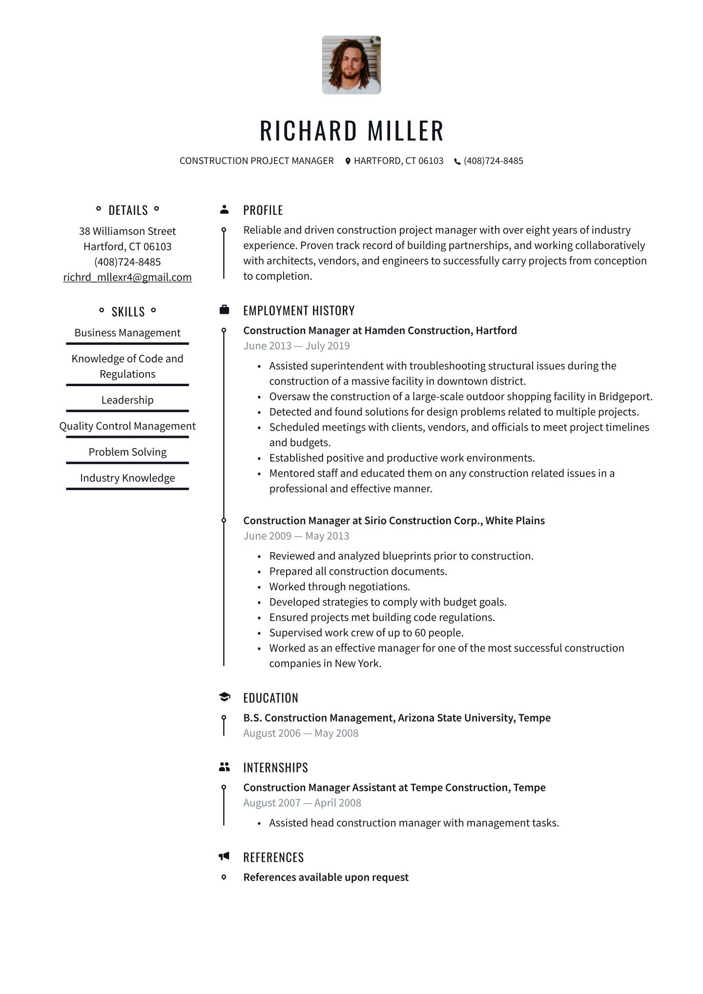 Architects may need to place more emphasis on their CV layout than other professionals but that doesn’t mean they are any less busy. A resume template can be a quick way to lay out the foundation of your resume. Resume.io’s templates provide an adaptable framework for you to modify, create and adapt each resume based on your preferences and the needs of the employer.