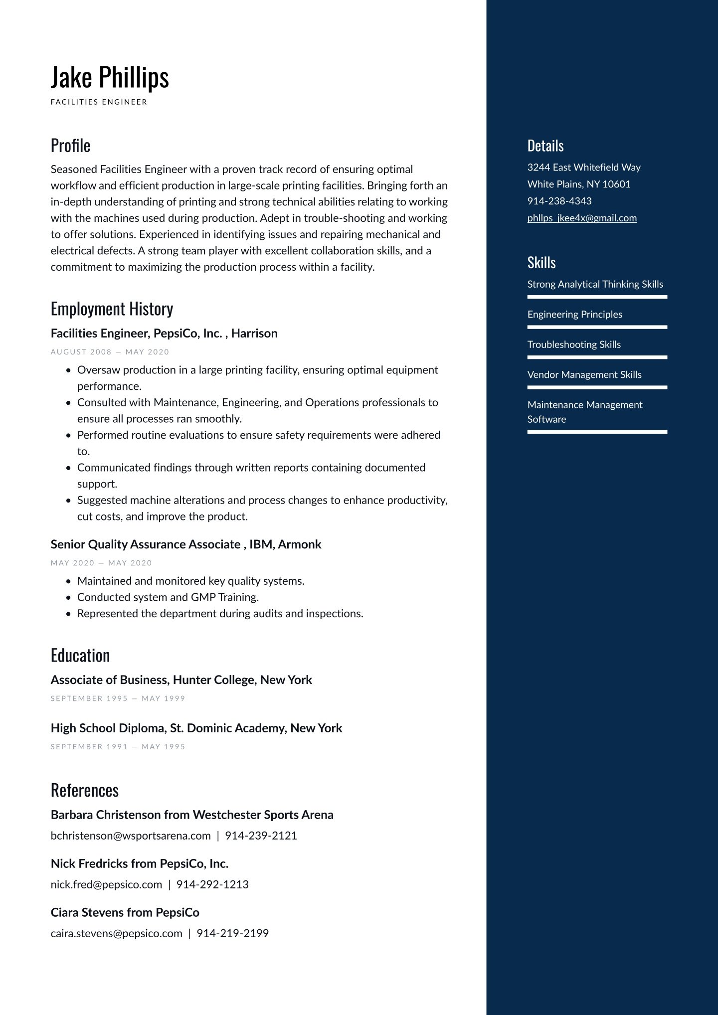 - Sep 2009 - May 2011, Bachelor of Engineering, Manhattan College, New York