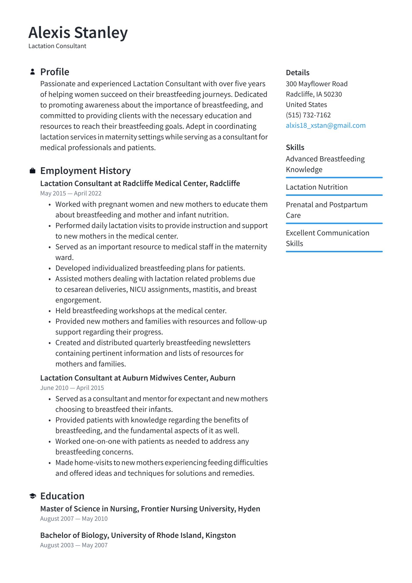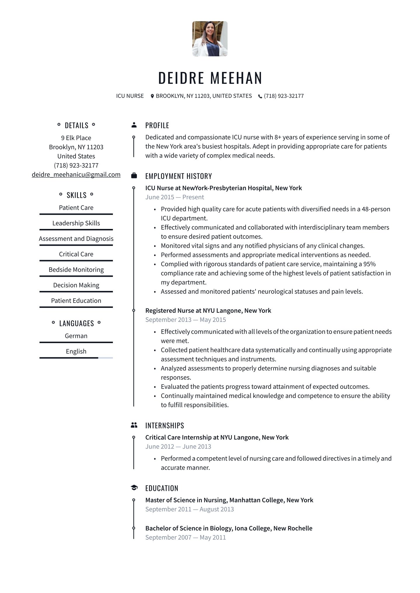 But if the healthcare position you’re pursuing would be a radical departure, or your job background has not followed a linear path of employee positions, you might want to consider a combination resume as an alternative resume format. This structure starts with a skills or experience section to highlight all your best qualities before continuing to a work history section where you can place previous positions.