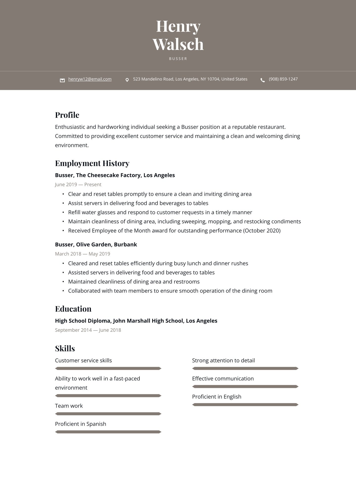- The best format for a hospitality and catering resume