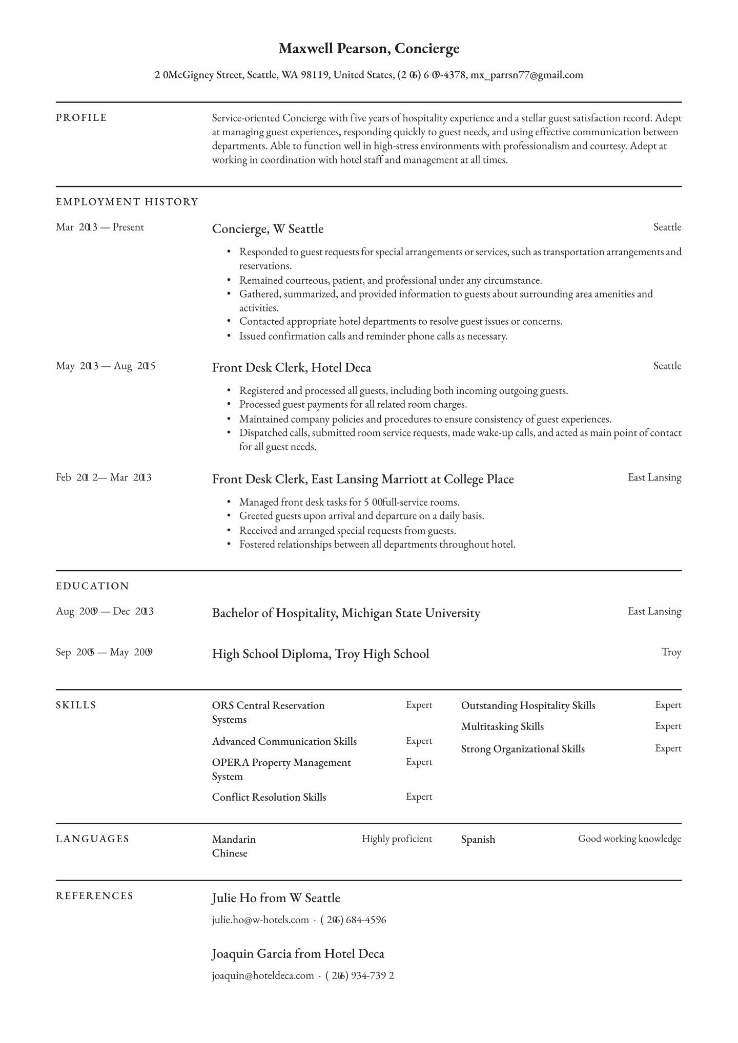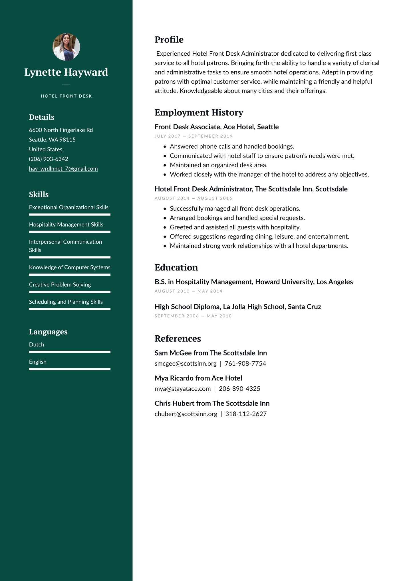 Presentation matters! Especially if you are in reception, a concierge or any other forward-facing professional, you know that first impressions are lasting.That’s why the layout and design of your hospitality and catering resume is so important.