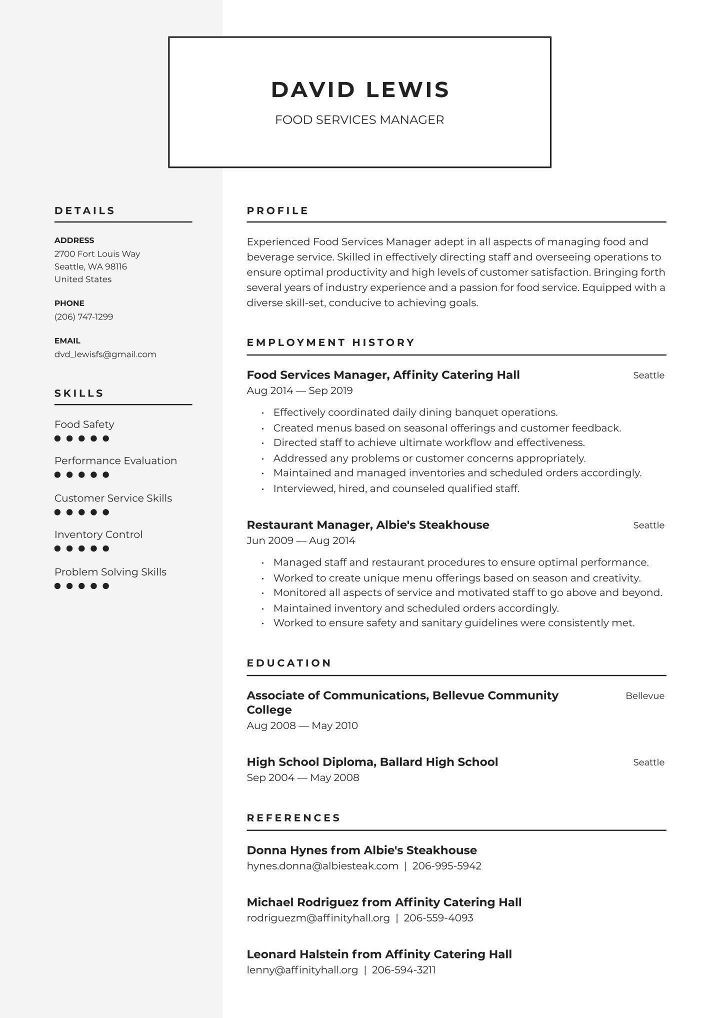 Experienced and passionate Catering Director adept in planning and managing overall catering functions for both small and large-scale events. 10 years of operational experience in a variety of both non-commercial and commercial catering/banquet settings.