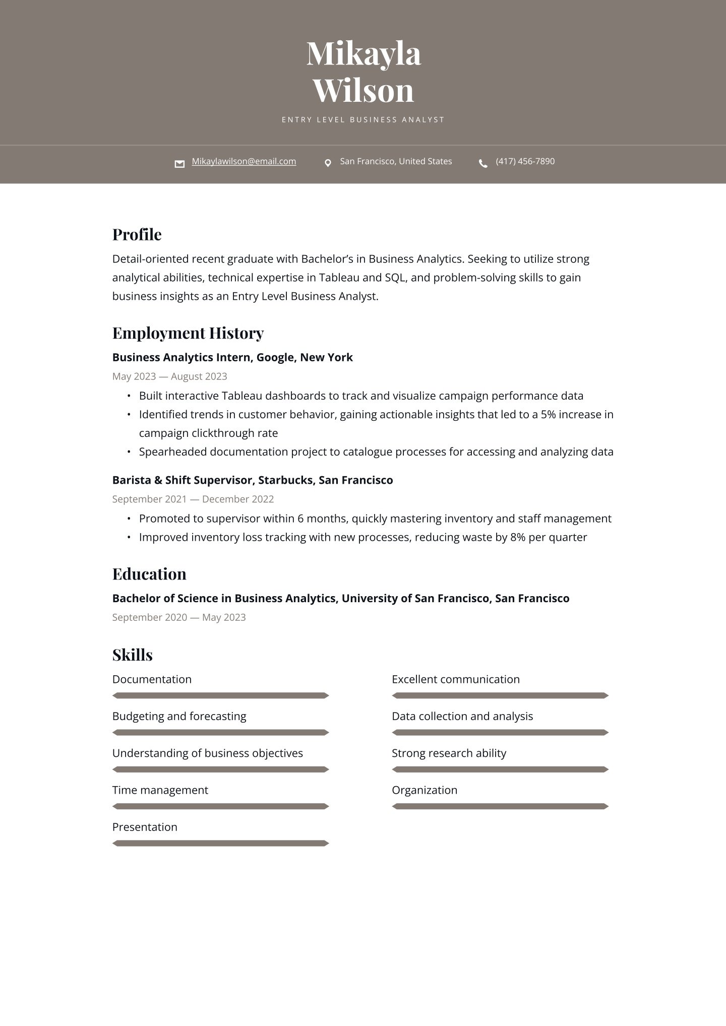 A distinctive resume header can visually set you apart from other intern candidates. It enhances the reader-friendliness of your document while also readily identifying who it belongs to.