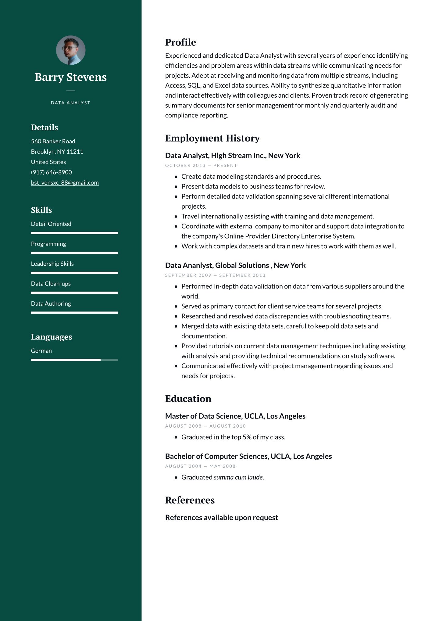 Seasoned marketing manager ready to take on new challenges through retraining in master's of Data Science program. Experience with data collection and analysis leading to the development of complex marketing plans. Bachelor of arts degree in marketing with minor in statistics from UCLA.