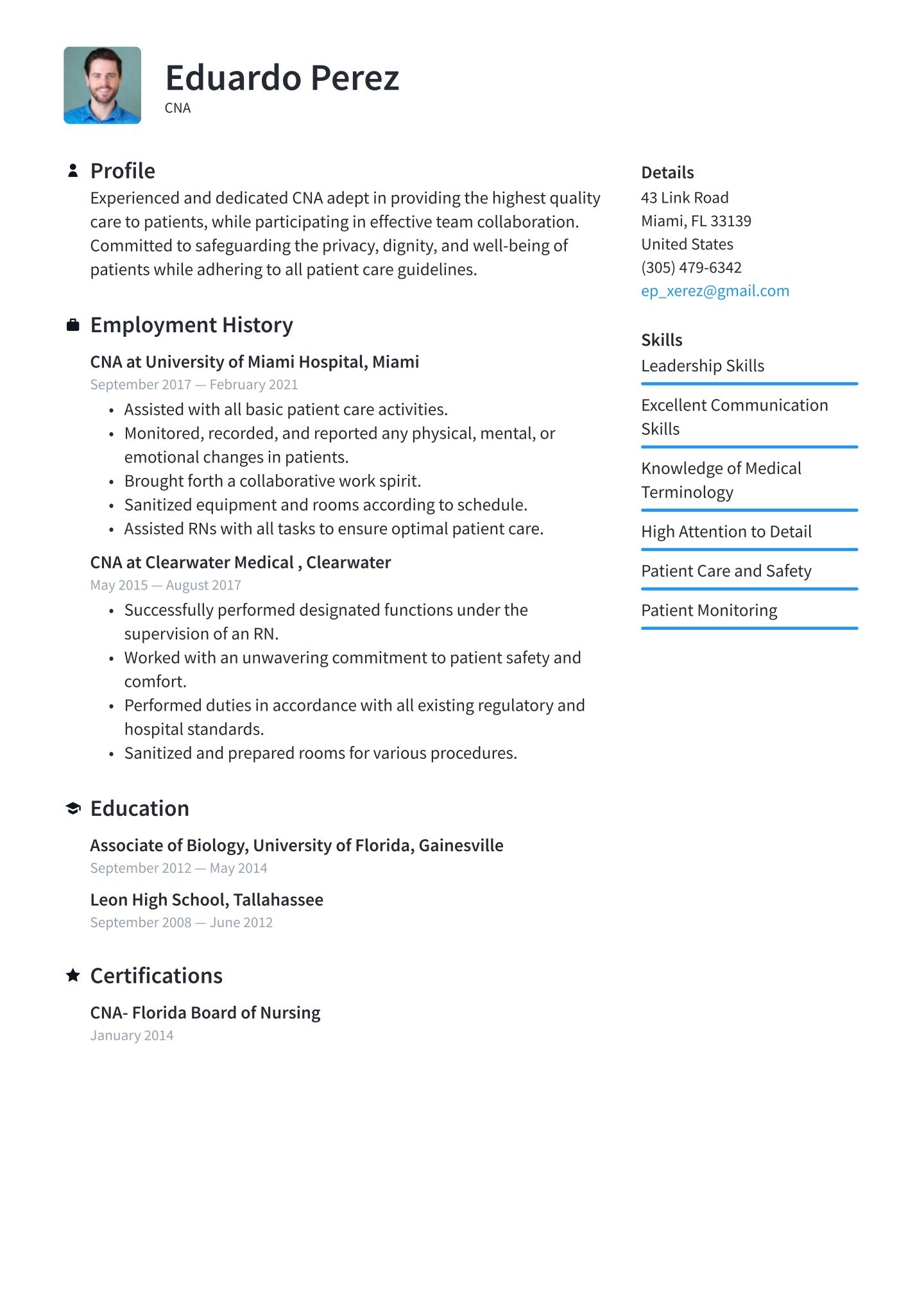- CNA resume sample