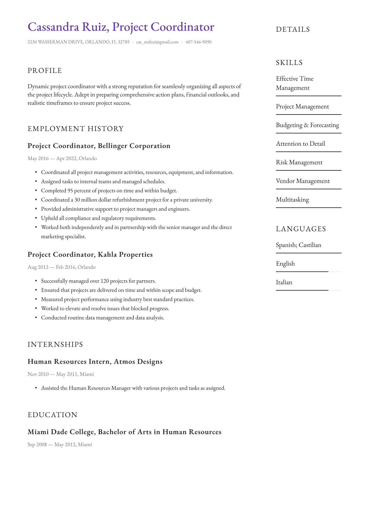 - Project Engineer resume sample