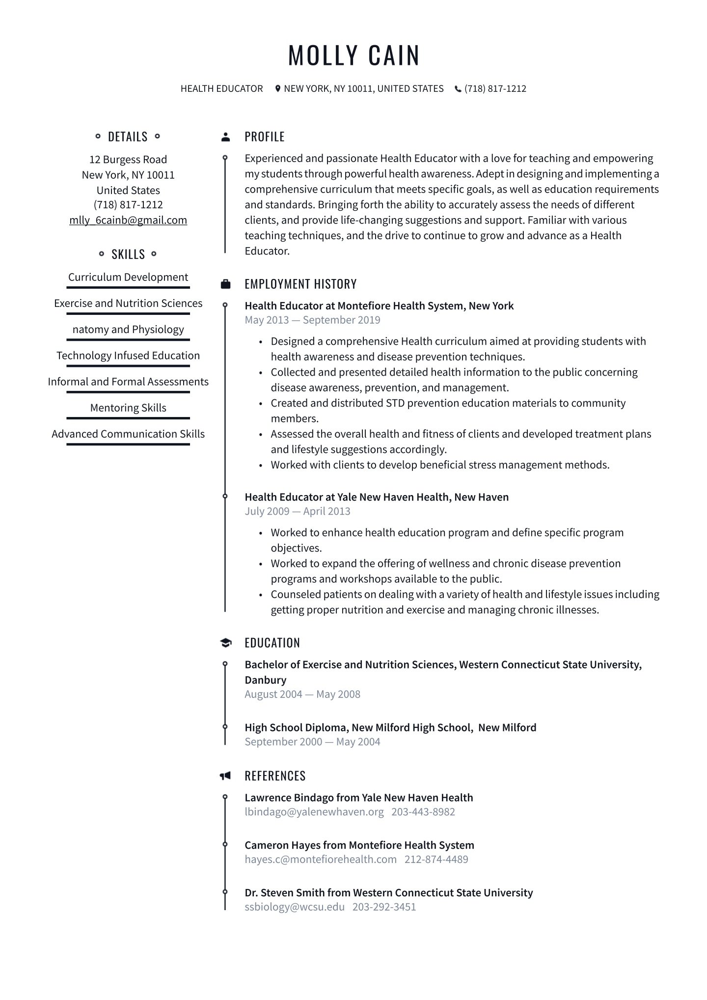 - Health Educator resume sample
