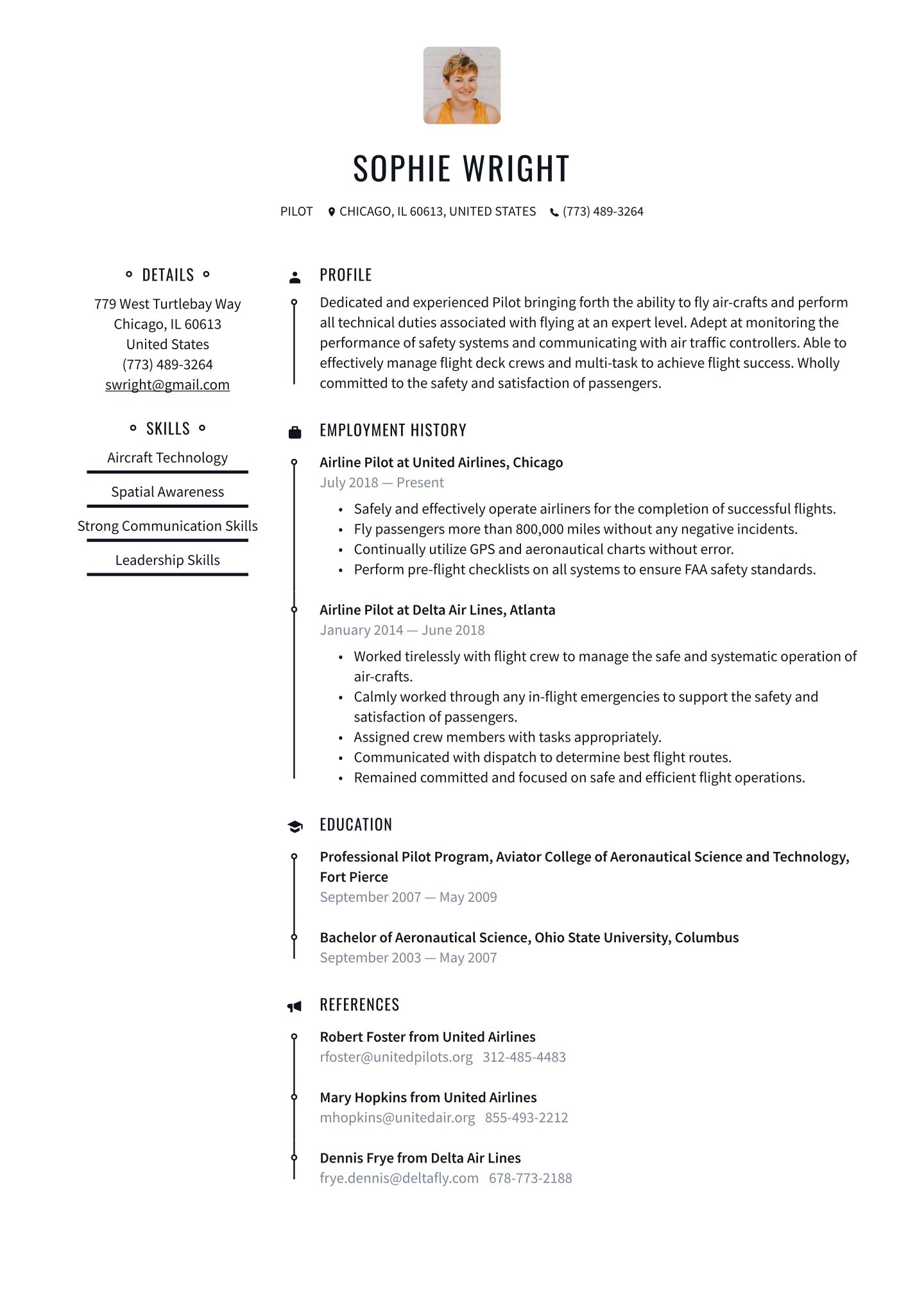 If you want to read over more resume samples before you get started and you fly for a living, try our airline pilot or pilot resume examples. We also offer a flight attendant resume example. If you travel on the road, we have a bus driver or driver resume sample. Finally, for rail riders, we have a train operator resume sample and for seadogs, a seaman resume sample.