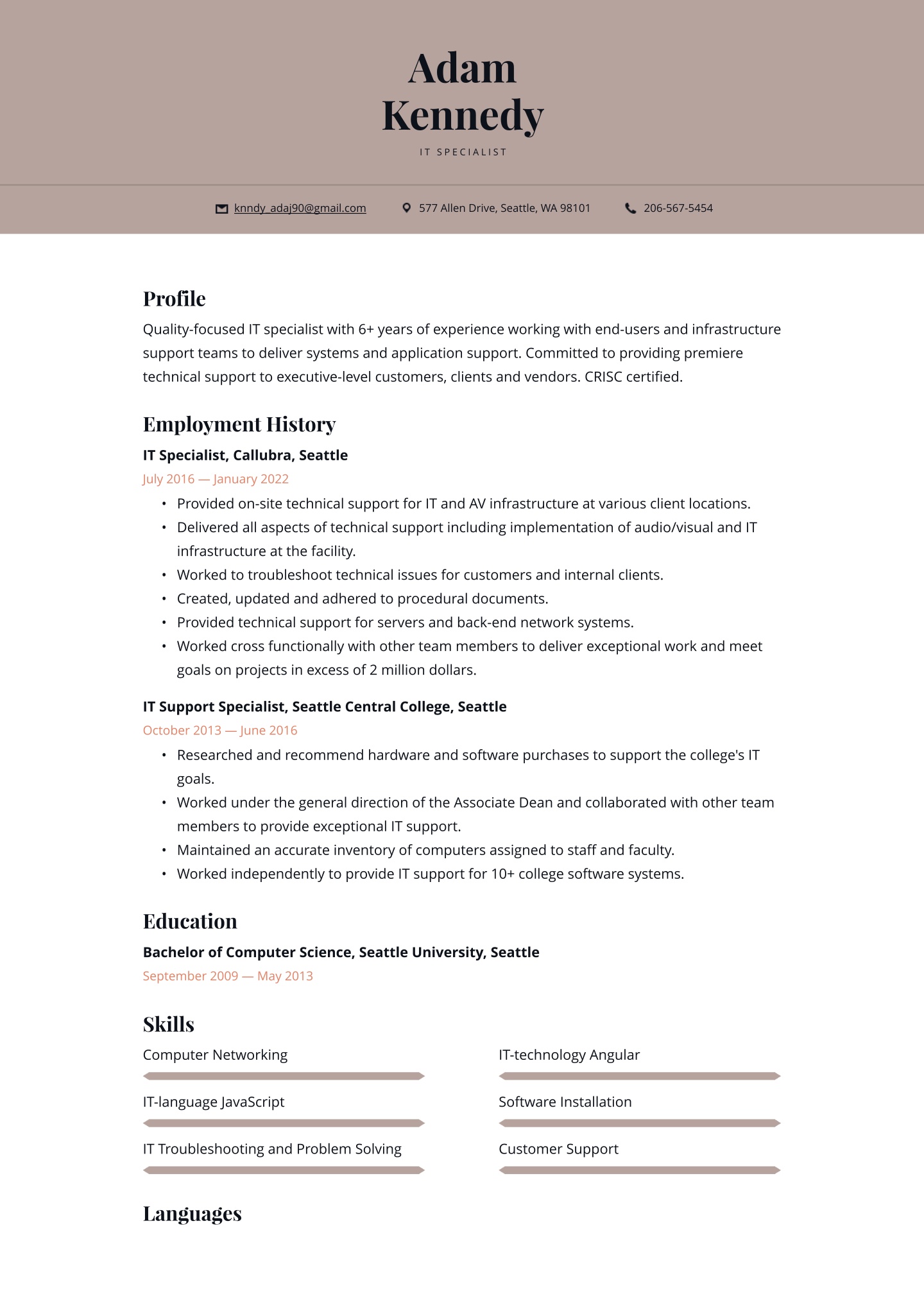 Perusing the resume templates in our resume builder will reveal versions of the three formats available as resume examples.